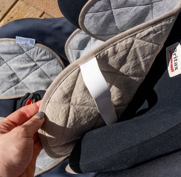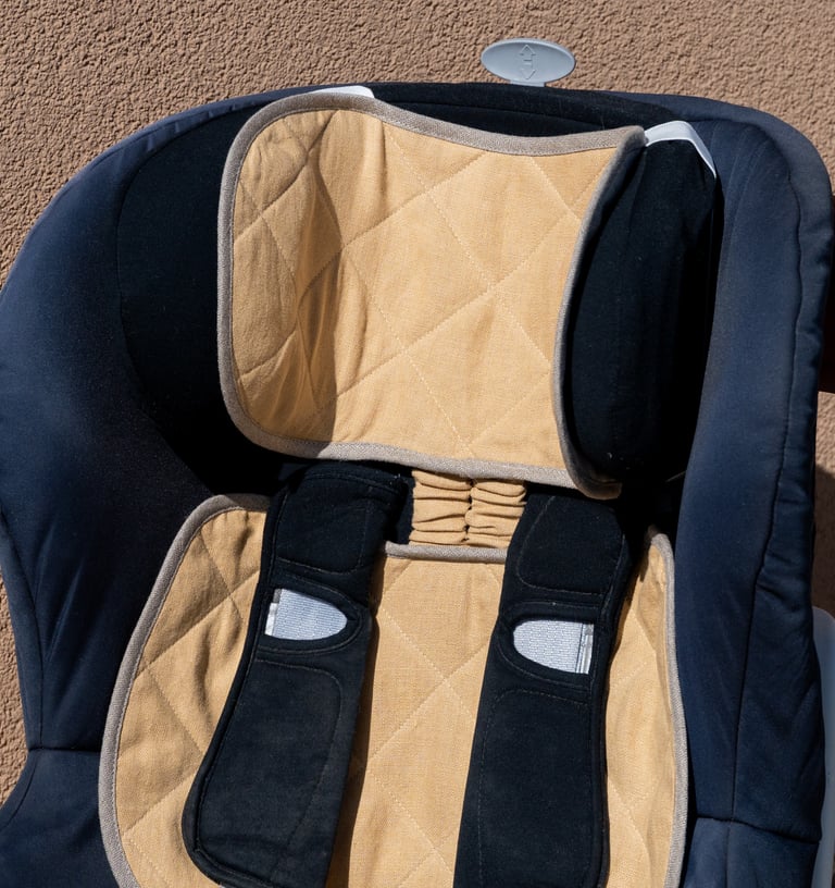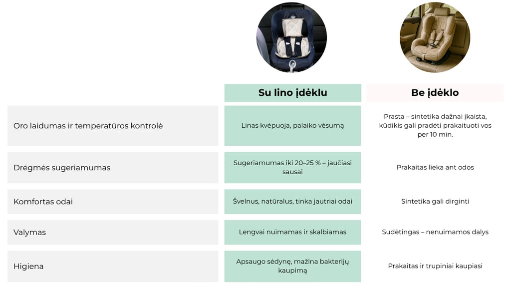 Lininiai įdėklai – natūrali apsauga nuo prakaitavimo ir perkaitimo automobilinėje kėdutėje.