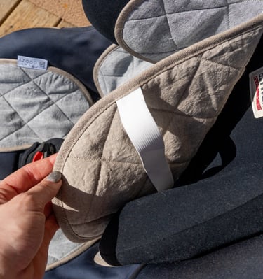 Jei įdėklas nėra išpurvintas, rekomenduojame jį tiesiog pravėdinti po pasivažinėjimo. Skalbkite tik esant reikalui – vilnos režimu arba 20–30 °C temperatūroje su kuo mažesnėmis apsukomis. Taip medžiaga ilgiau išliks graži ir nesusitrauks. Po skalbimo šiek tiek ištieskite ir palikite natūraliai išdžiūti.